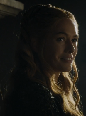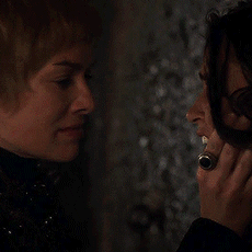 After months away, manipulating things in the North, Baelish returns to King’s Landing to “play the game” with Cercei. He lies to Cercei, telling her that House Bolton has decided to marry Ramsey to Sansa, leaving out the fact that he was the one who in fact arranged the marriage. He tells Cercei to let Stannis fight the Boltons, and that he will swoop in with the knights of the Vale to crush the loser and claim the North for House Lannister. All Cercei has to do, in exchange, is name Baelish warden of the North. And once again, we are left scratching our heads and wondering what Baelish really wants here — just as we were starting to consider trusting him and thinking he might actually care for Sansa. And now, we wonder whether he is playing Sansa and still serving Cercei….Or playing Cercei and still looking out for Sansa…Or serving other motives altogether… And in a very precise choice of words, Baelish reminds Cercei that he “always serves the Throne,” rather than stating that he serves the Lannisters.