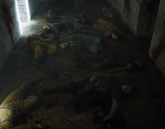 Preparing for her wedding, Miranda washes Sansa’s hair and attempts to scare her. But, Sansa is no longer a scared child, and she won’t let Miranda frighten her — least of all in her own home of Winterfell. With nobody there to protect her and no longer able to avert the imminent danger that has been surrounding her for so long, Ramsey finally gets his hands on Sansa. As he forces Theon to watch, he rapes Sansa, officially marking the end of the Sansa we once knew. Even through all the terror and torture she has endured over the years, and even as she has evolved into a darker character that has begun to understand the evils of the world, she still had one thing that nobody had taken from her — her virginity — the one remaining symbol of her innocence, her youth, her purity. And just like that, it’s all gone, and Ramsey eliminates whatever innocence was left of Sansa. And as Theon is forced to look on, we see the theme of faces come full circle, as Theon is unable to hide the truth of his character — deep down, he is not Reek, he is still Theon, and we see the disgust and terror on his face as he is forced to watch the last drops of innocence taken from Sansa.