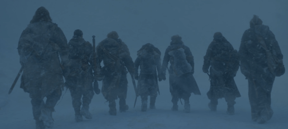 In the North, the plot continues to thicken, and though we haven’t seen the White Walkers in quite some time, it feels as though winter is closer than ever. And as winter is coming, desperate times call for desperate measures. Stannis tells Davos that winter could come any day now, and without further notice, he leads his army towards Winterfell to take back the North from House Bolton. But Roose Bolton is anticipating his arrival, as he tells his son Ramsey that Stannis will arrive at Winterfell any day now, and implores his son to help him defend the castle. We are left to wonder how Roose Bolton will fend off the much larger army of Stannis and defend the North. Stannis also commands Samwell to continue reading his books to try and find a way to defeat the White Walkers.