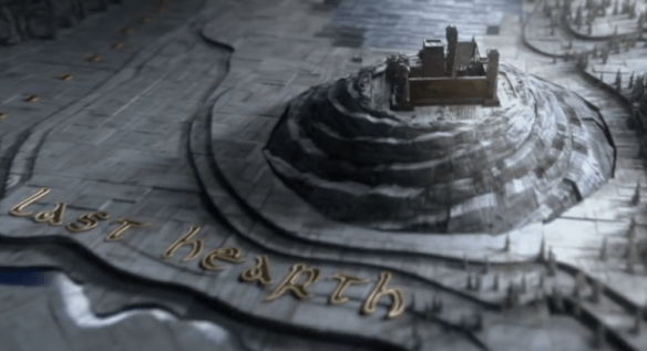 Speaking of the Night King’s descent south, we are introduced to a brand new location, The Last Hearth, which was a castle belonging to House Umber. We see the army of the dead’s tracks leading right up to this castle, and to no surprise, we find out by the end of the episode that The Night King had definitely been there (we’ll get more into that later). What you also might have missed in the opening credits, is that they showed this castle built upon a small spiral mountain — the same spiral that has been synonymous with The Night King/White Walkers (we’ll get more into that one later as well).