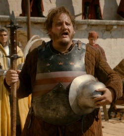 Ser Dontos Hollard is the last remaining member of House Hollard, which was extinguished alongside House Darklyn, during the Defiance of Duskendale. While the rest of his house was wiped out, Ser Barristan Selmy requested that the Mad King pardon Ser Dontos; since Ser Barristan had saved the Mad King, he acquiesced his request and Ser Dontos was taken to King’s Landing as a squire. On Joffrey’s first nameday as king, Ser Dontos was supposed to ride against another knight, but showed up too drunk. Joffrey took this as an insult and sentenced him to death. However, after Sansa pleaded to his life, Joffrey agreed to spare him, but stripped him of his knighthood and anointed him the town’s fool. Later, Ser Dontos appears to Sansa and gives her his mother’s necklace, before appearing once again during the chaos of King Joffrey’s death.